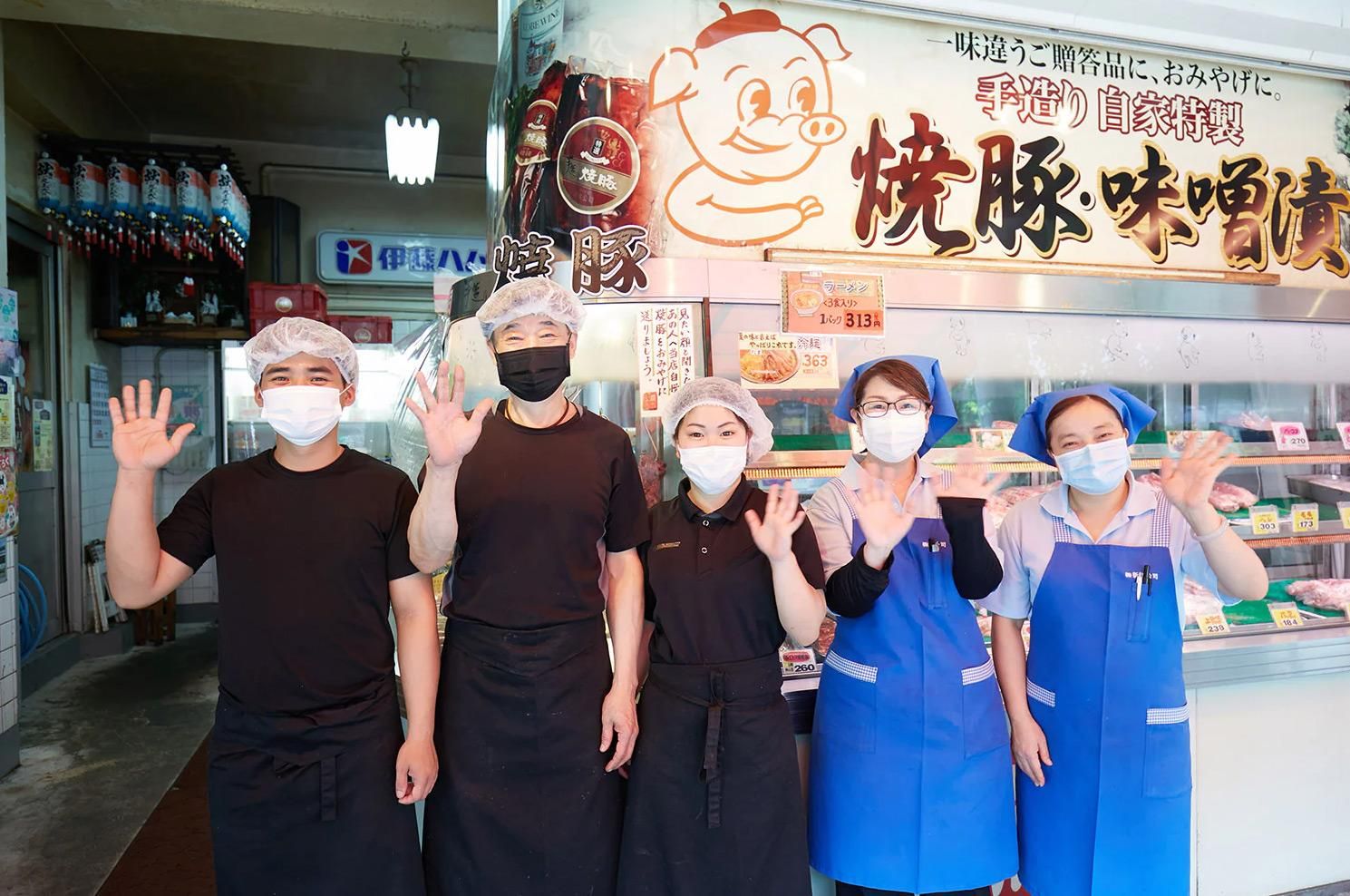 当店の看板商品は、手作りの焼き豚。新鮮な状態で届いた国産豚肉を秘伝のタレに24時間漬け込み、熟練の職人が直火窯でじっくりじっくり香ばしく焼き上げています。現在では本店をはじめ、神戸や大阪の百貨店などでも販売し、3世代でご利用くださっている常連さんや、おせち料理の一品としてお使いいただいているお客様もたくさん。